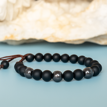 For those drawn to sleek sophistication and grounding energy, the Black Obsidian Matte & Hematite Bracelet is a powerful accessory. Black Obsidian is often associated with protection and inner strength, while Hematite is believed to promote stability and focus. Together, they create a bold, modern design that blends fashion with function—perfect for the man who values style with purpose.