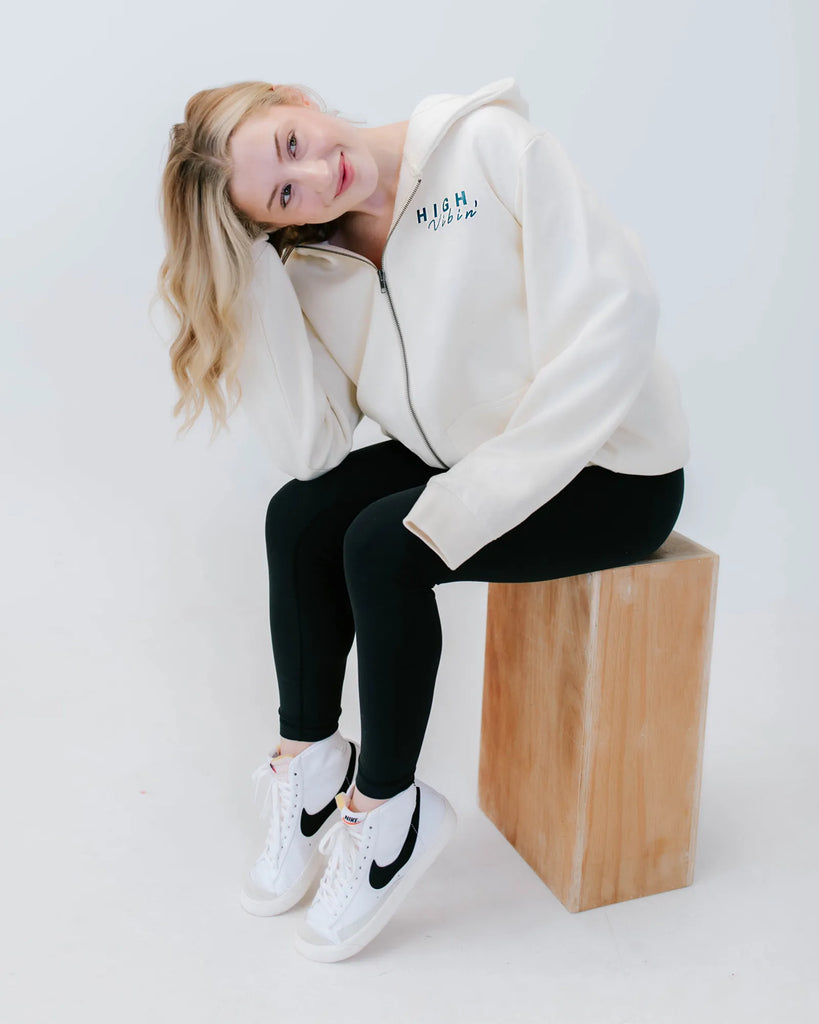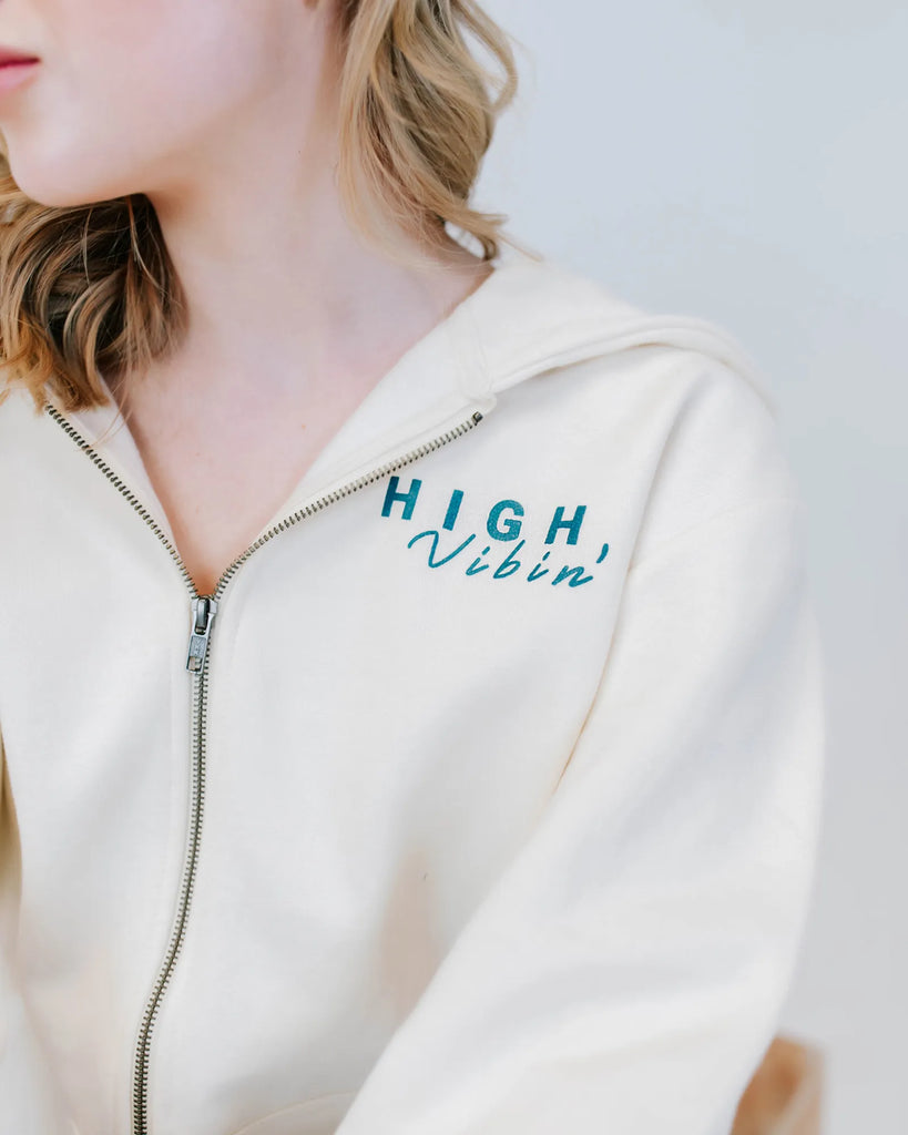 Step into your highest energy with our High Vibin' Zip Hoodie. Crafted from luxurious organic cotton, this zip-up hoodie is embedded with high-vibrational crystals to elevate your frequency throughout the day. Designed for warmth, comfort, and conscious living, it features the affirmation "High Vibin'," reminding you to stay connected to positivity and embrace your highest self with every step.